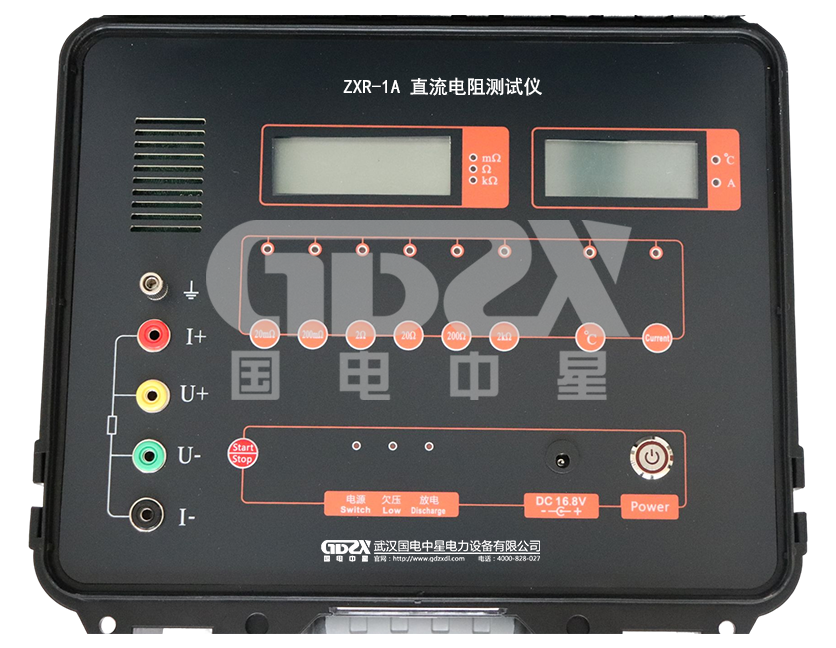 ZXR-1A直流電阻測試儀是取代直流單、雙臂電橋的高精度換代產品。儀器采用開關電源技術,由四位半LCD液晶顯示測量結果,三位半LCD液晶顯示環境溫度或測試電流值,克服了其它同類產品由LED顯示值在陽光下不便讀數的缺點,同時具備了自動消弧功能。本儀器具有測速快、精度高、顯示直觀、抗干擾能力強、體積小、耗電省、測試數據穩定可靠、不受人為因素影響等優點。是測量電力變壓器等各種感性負載電阻及低壓開關接觸電阻、電線電纜或焊縫接口電阻的理想儀器,其測量速度比電橋快幾百倍。儀器內裝可充電電池組(12V),交、直流兩用,便于現場及野外測試。
