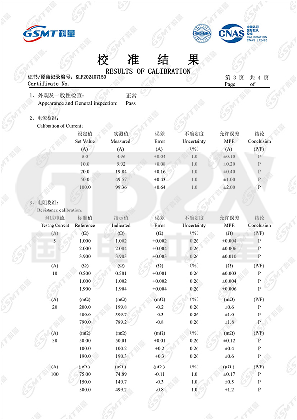 | 測量范圍 | 50μΩ~100mΩ (100A) 100μΩ~200mΩ (50A) 200μΩ~800mΩ (20A) 500μΩ~2Ω (10A) 1mΩ~4Ω (5A) | |