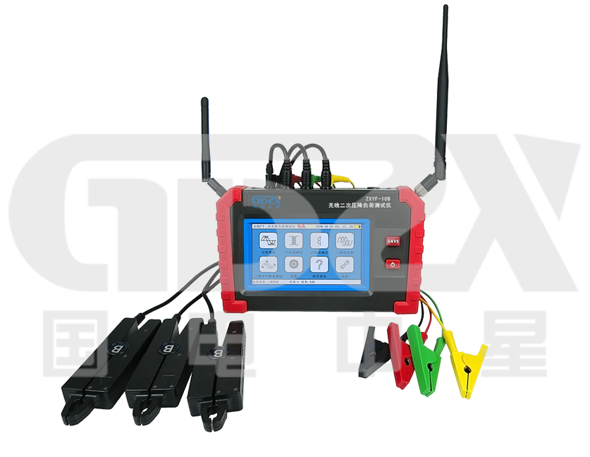 ZXYF-10B無線二次壓降負荷測試儀由2臺手持終端、6個電流鉗、2組電壓測試線等組成,手持終端具有5英寸觸摸彩屏,中文界面,大容量鋰電池,USB接口。單機具有三相伏安表、負荷測試儀、諧波分析等功能。雙機具有無線PT二次壓降測試儀、無線PT核相儀、無線三相相位伏安表等功能。采用GPS衛星授時及LORA無線通訊技術,準確測試出PT壓降誤差及計量誤差。四機同時使用時,可將一臺設置為主機,另三臺設置為從機,特別適合多點同步測試,使用靈活方便。儀表帶有藍牙通訊,安裝APP后可在手機進行測試或查看測試記錄。用于測試PT二次壓降及PT負荷、CT負荷,PT核相,在變電站內不同位置無線同步測量電流、電壓、相位、頻率、諧波等電力參數。