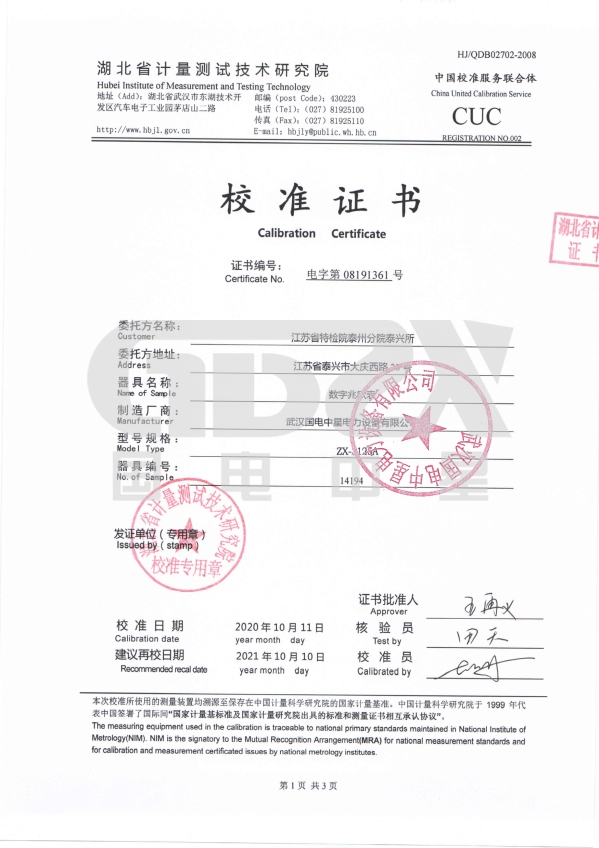 企業產品嚴格按照國際、國家標準及行業規程生產,通過國家、各省級、市級電力研究所、計量中心及電力權威部門的檢測,全面通過 ISO9001國際質量管理體系認證、中華人 民共和國制造計量器具許可證、GB/T19001-2008質量管理體系要求、GB/T24001-2004環境管理 體系要求、GB/T28001-2011職業健康安全管理體系要求。
